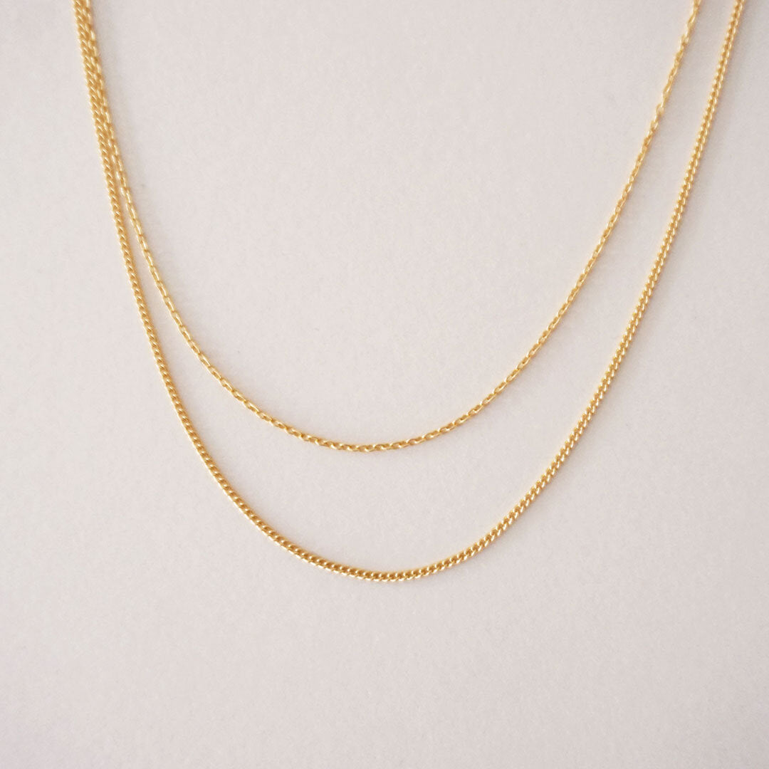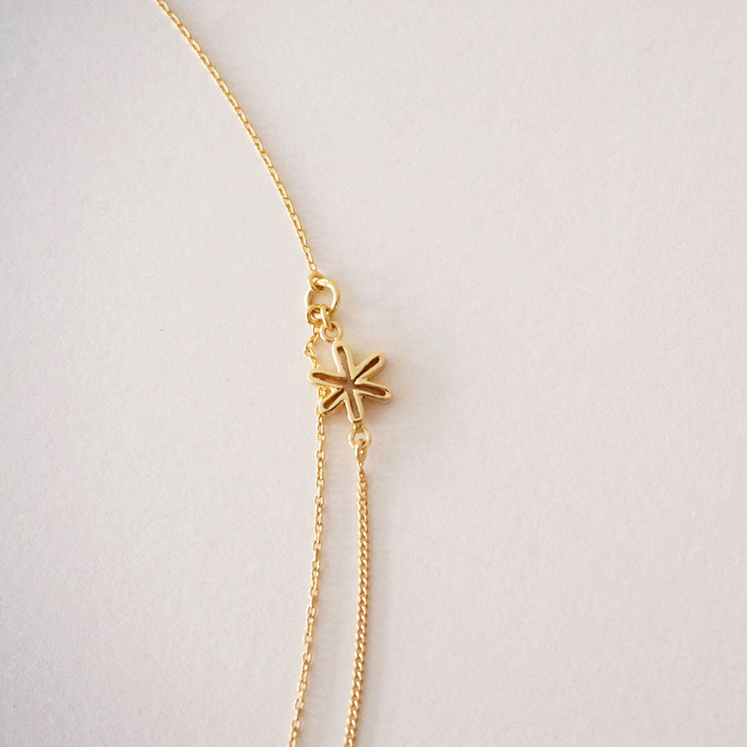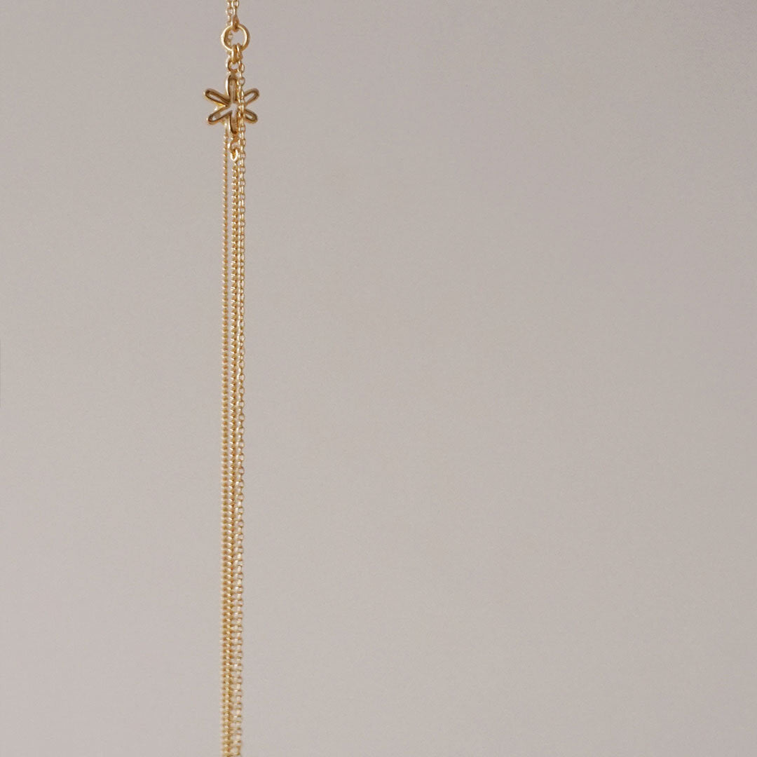 Necklace with two layered chains, both with a different formation, attached to a simple little flower.