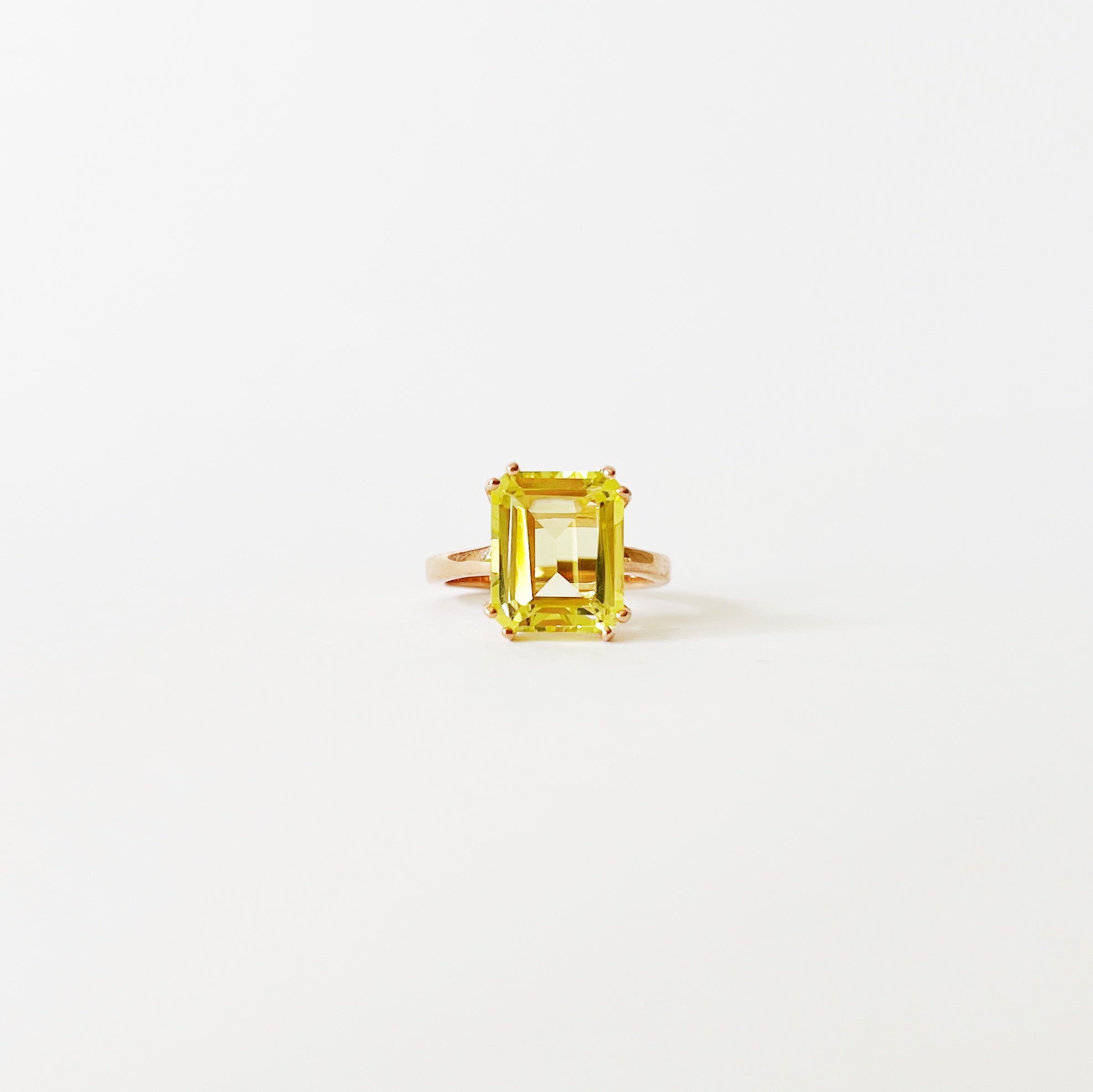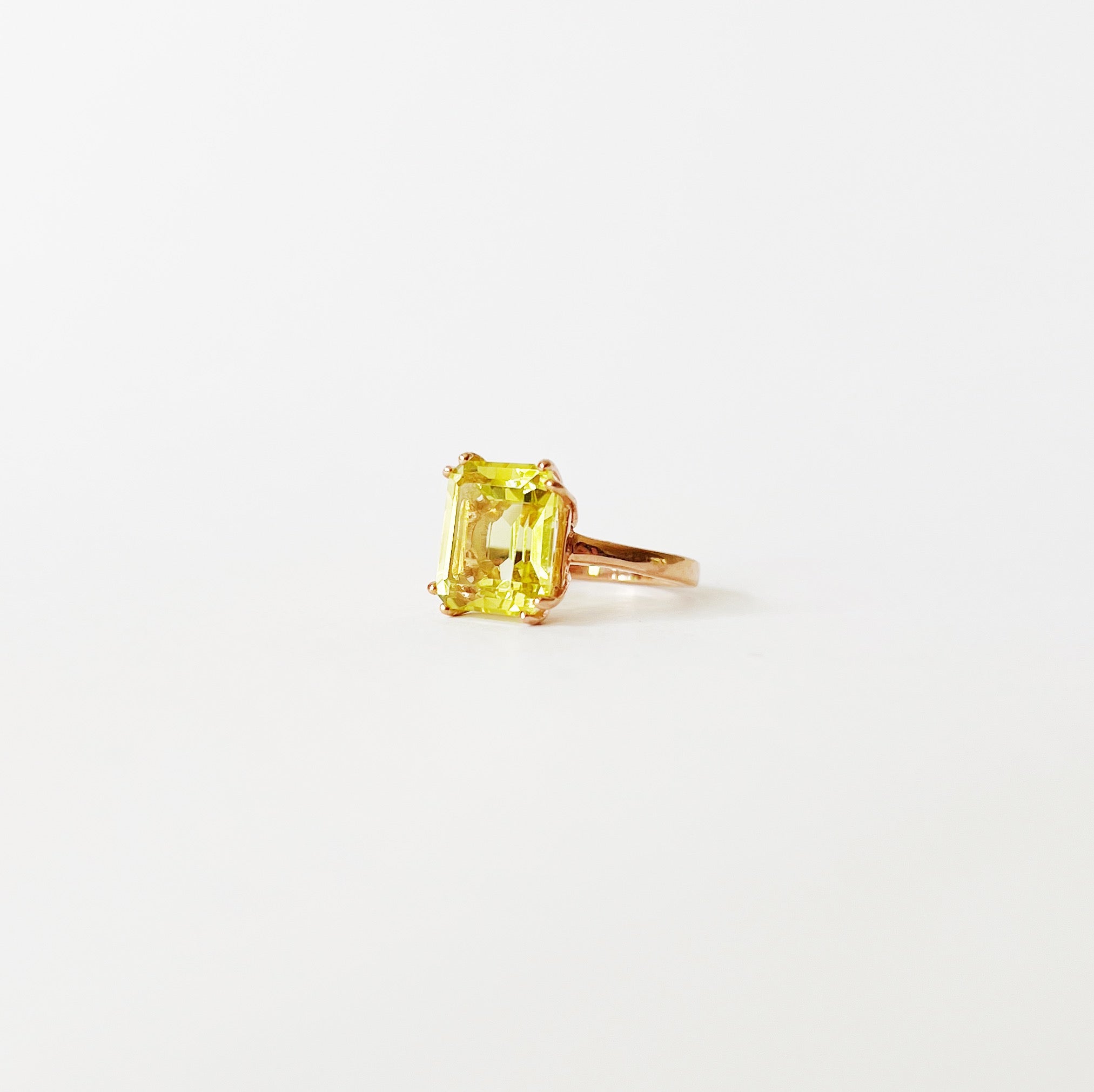 Our Empire ring is bold and fierce, probably the biggest you'll find in our entire collection. A thicker, solid ringband holds up a beautiful rectangular shaped gemstone, in Lemon Quartz.