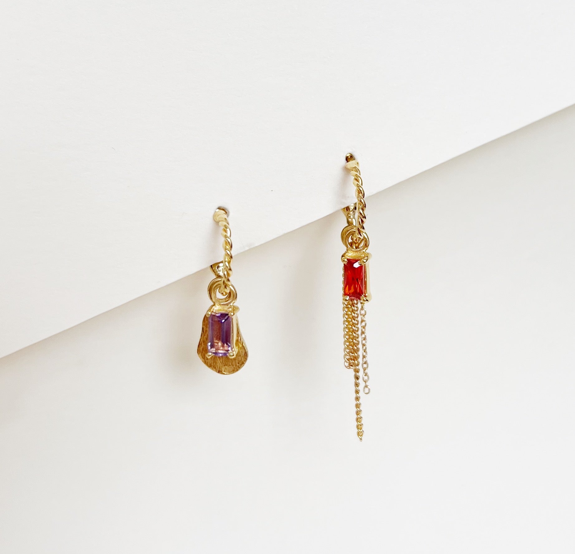 Our charm collection is made for you to mix & match effortlessly. Style your hoops with 1, 2, 3 or even 4 charms, to create the ultimate combination. We've combined this asymmetrical pair ready for you, which consists of: