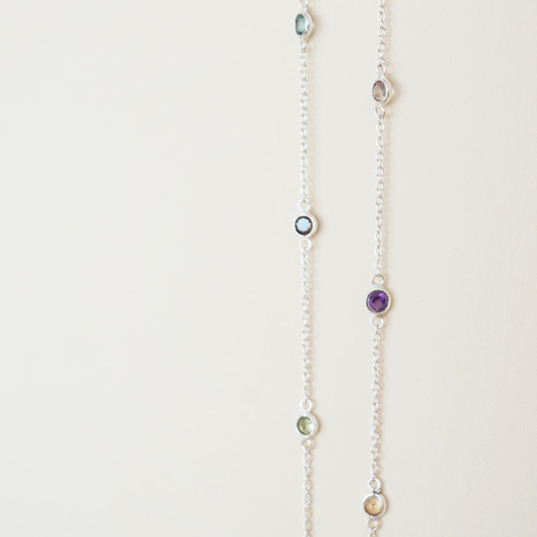 The balance between subtlety and sophistication adds interest to your neckline with the peafowl necklace. Handcrafted with 10 semi-precious gemstones, this distinctive demi-fine jewellery piece could be a daily wear. Great for layering too!