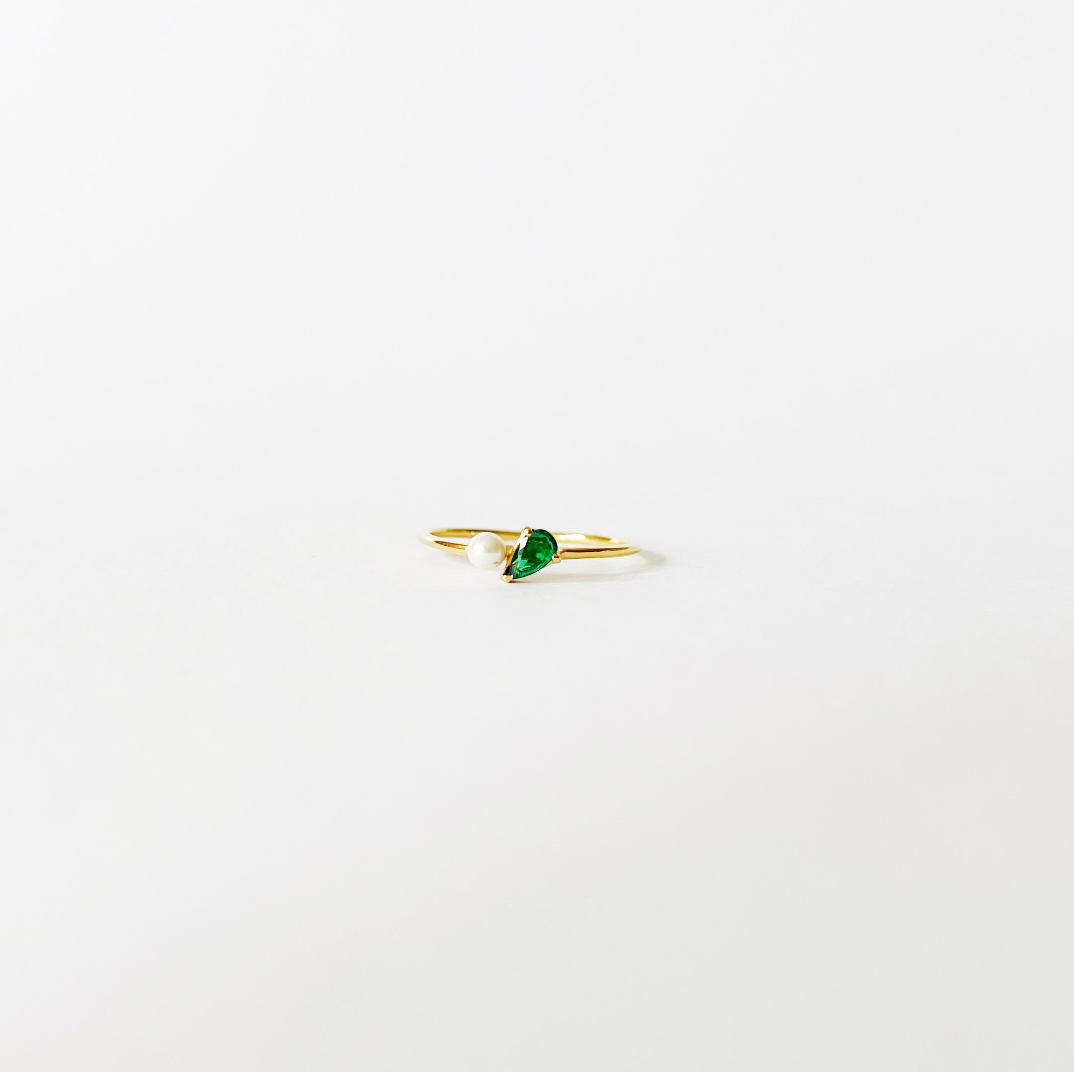 Our bouquet ring is made of a fine ringband with a popping pear shaped gemstone & sophisticated white pearl. It reminded of us of a small little bouquet on your hand, flourishing your day.