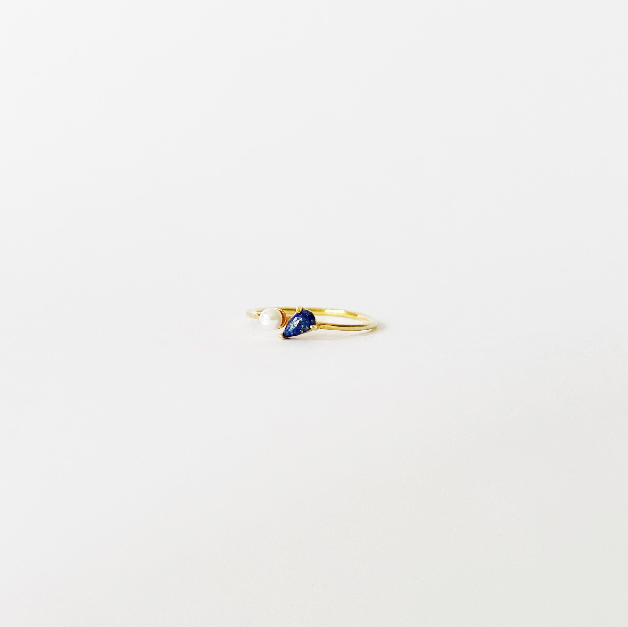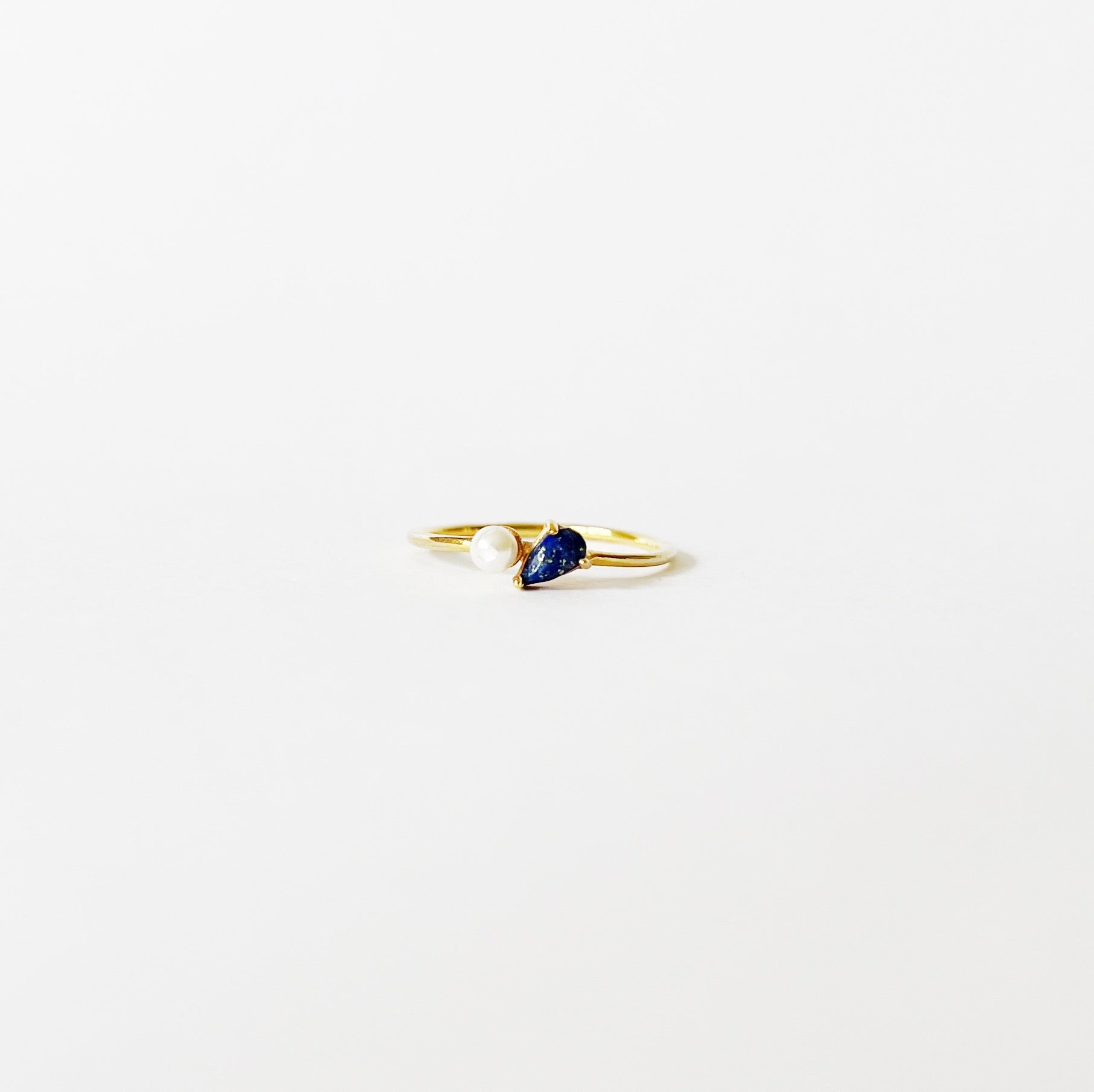 Our bouquet ring is made of a fine ringband with a popping pear shaped gemstone & sophisticated white pearl. It reminded of us of a small little bouquet on your hand, flourishing your day.