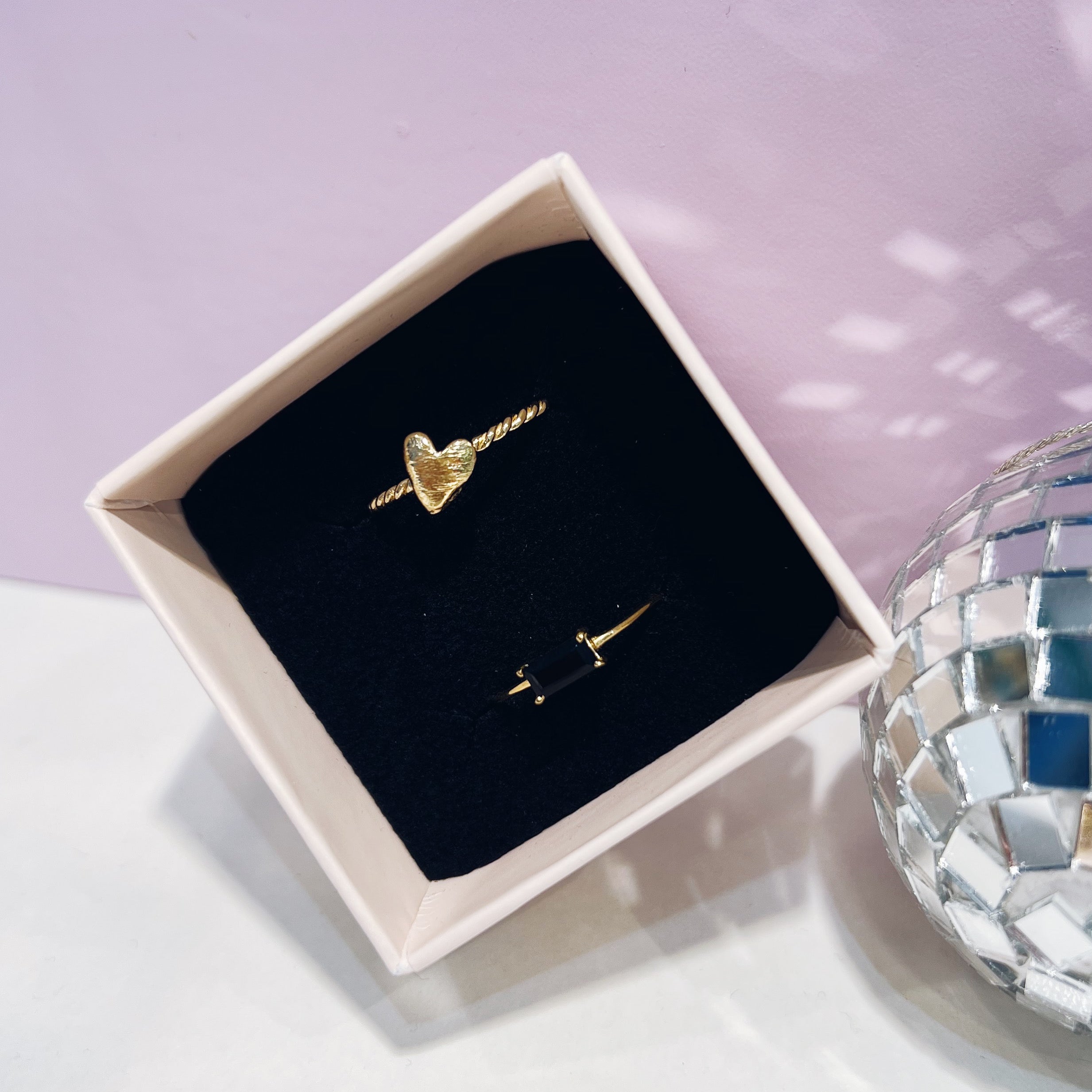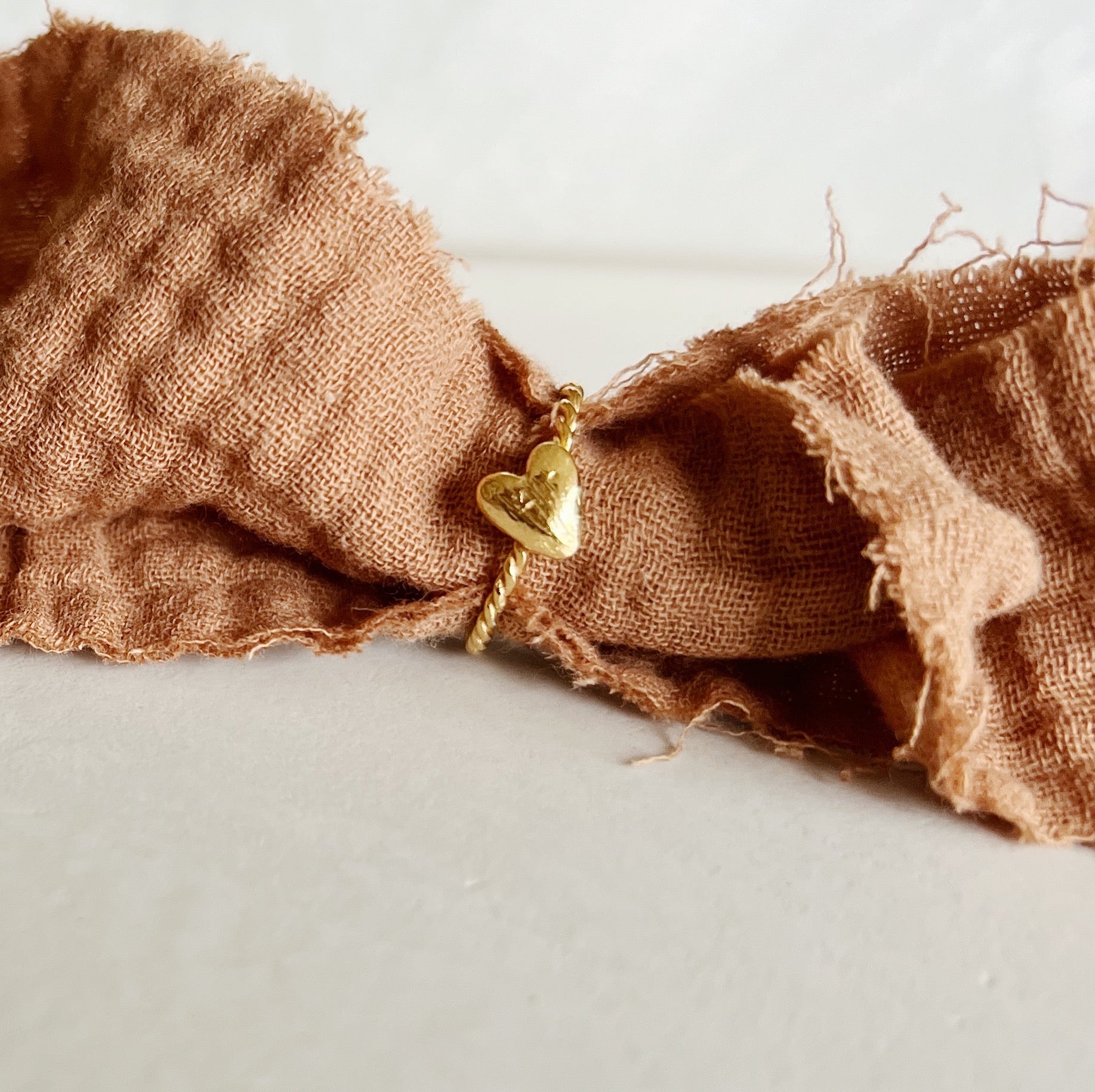 Your daily love note ❤️ A gold nugget heart icon topped on a twisted ring band, makes this ring the prettiest little accessory.