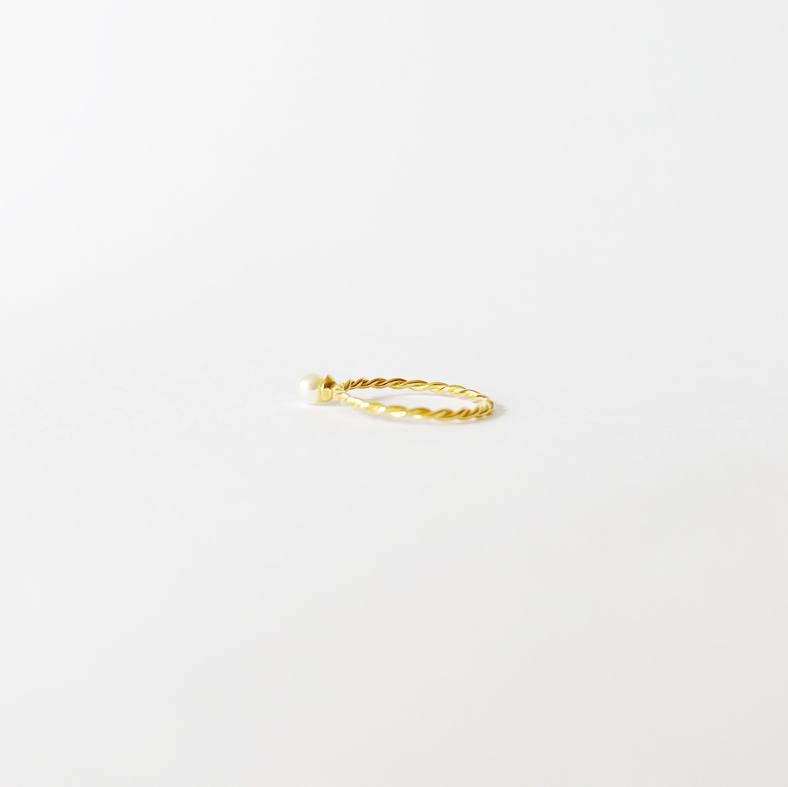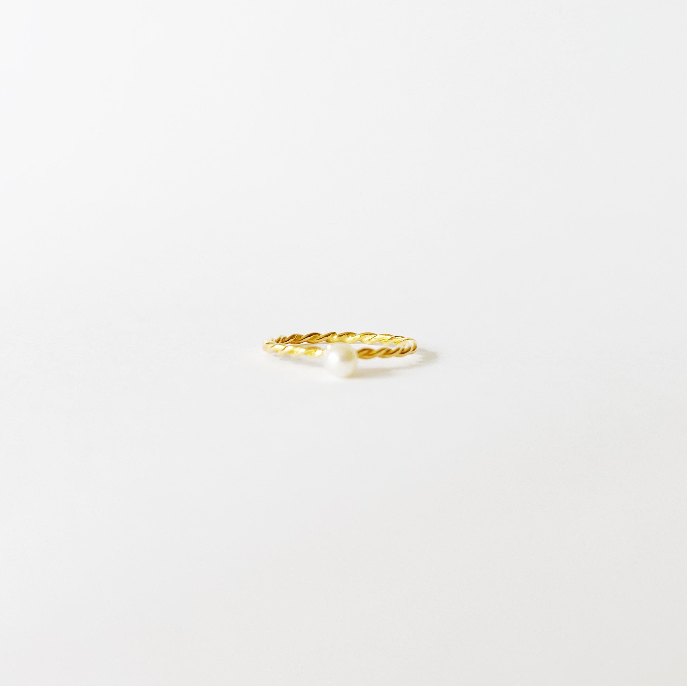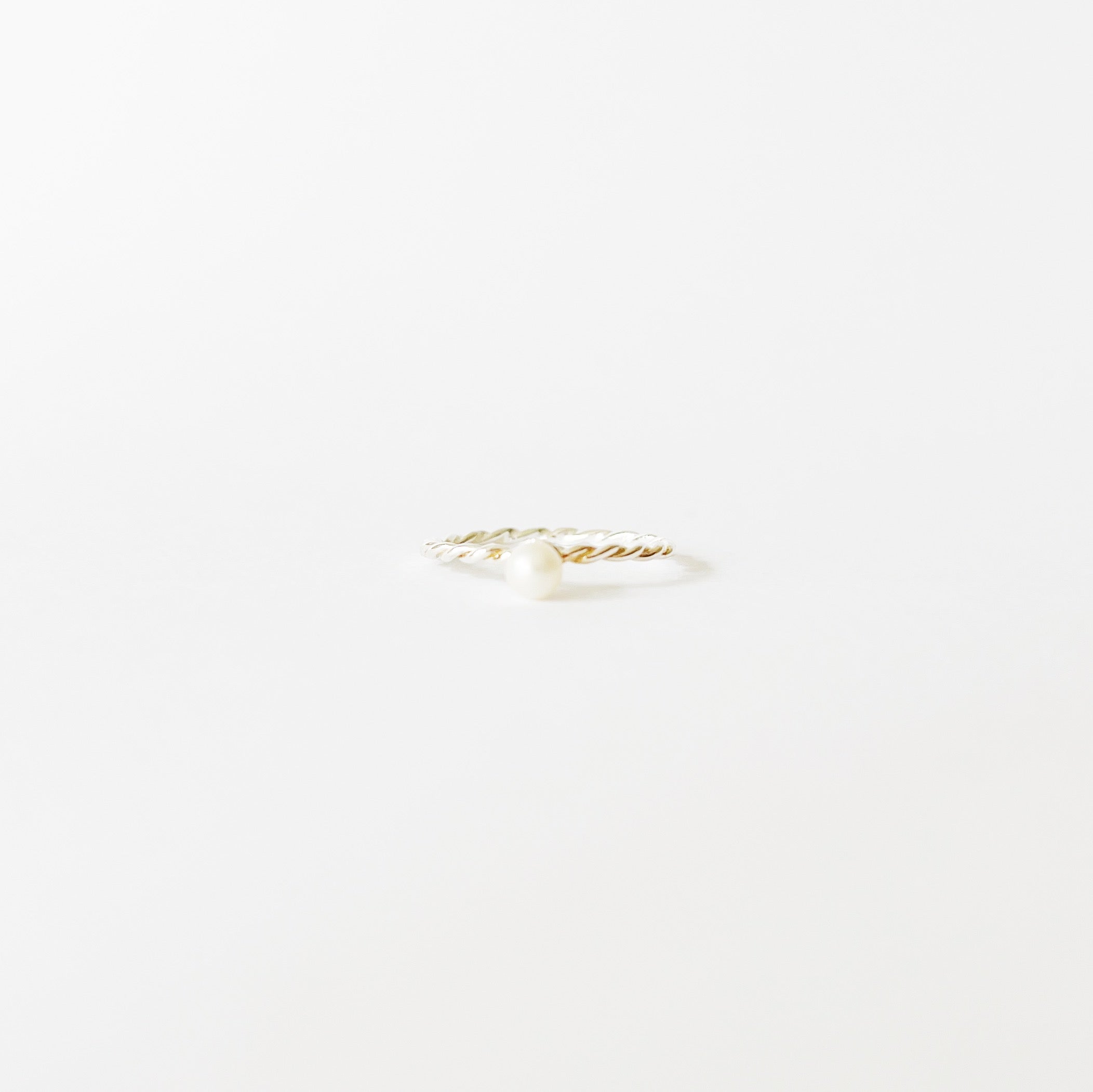 A classic from the Isle Collection, a little white pearl stacked on a twisted ringband.