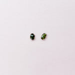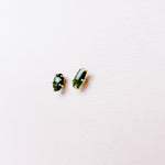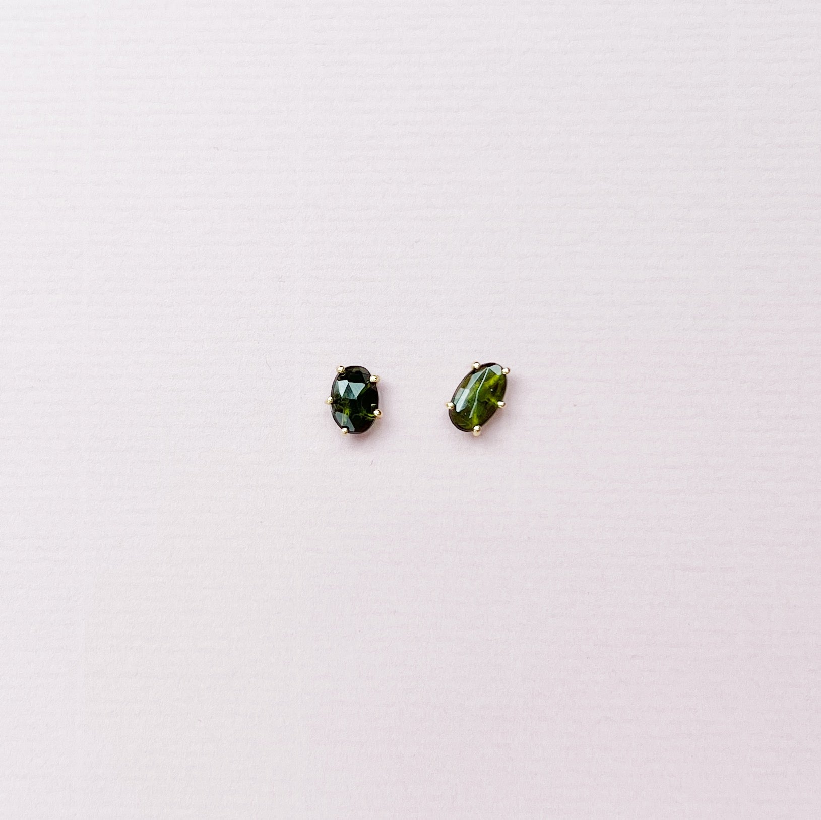 These beautiful Sakura stud earrings (sold as a pair) are detailed with two irregular, organic shaped Green Tourmaline semi-precious gemstones. Wrapped with a 5 prong 18k gold plated setting (base: 925 sterling silver).